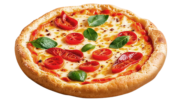 Crispy crust topped with molten cheese, fresh veggies, and rich sauce for a heavenly bite.