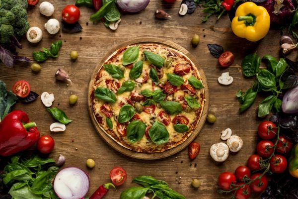 Crispy crust topped with molten cheese, fresh veggies, and rich sauce for a heavenly bite.
